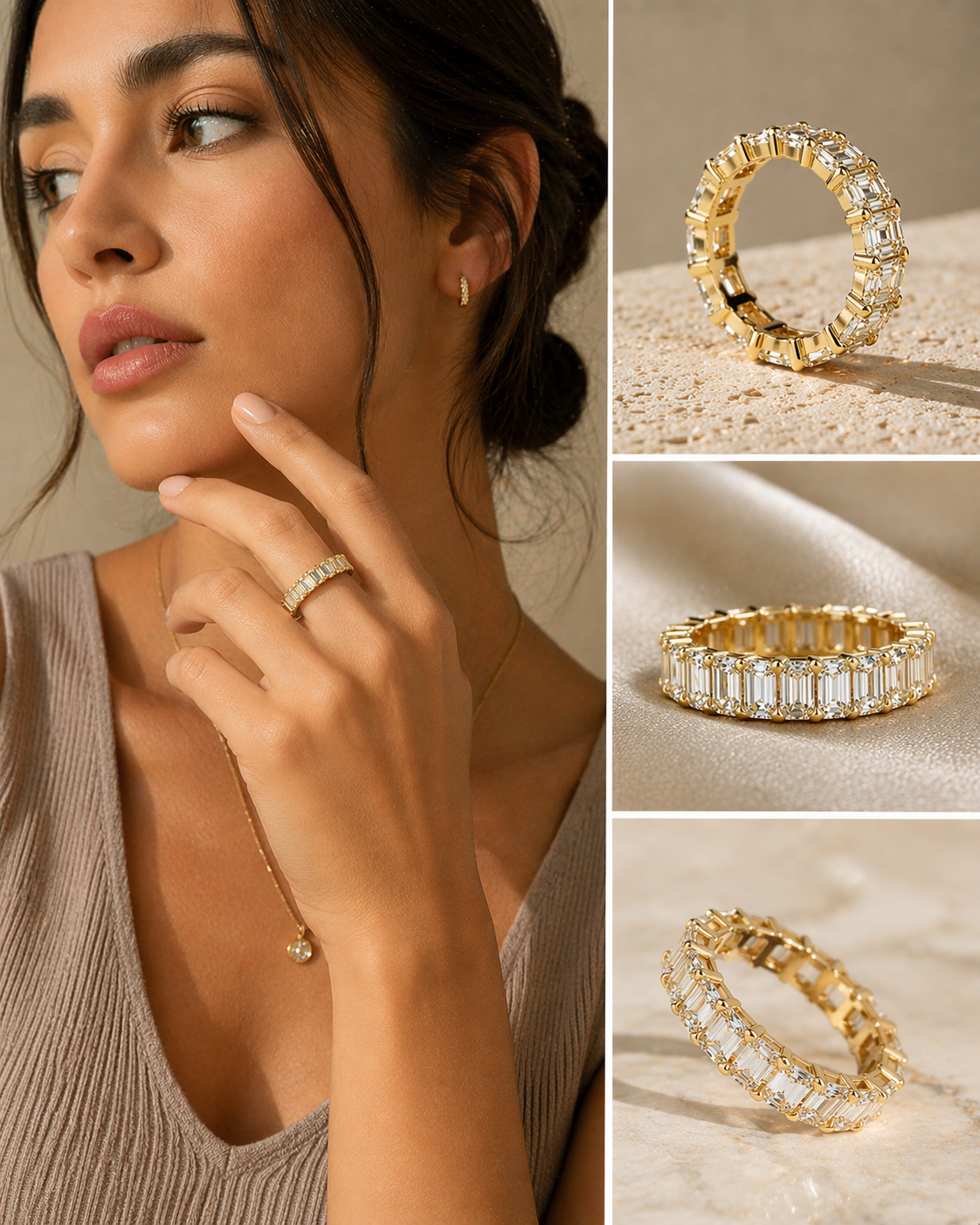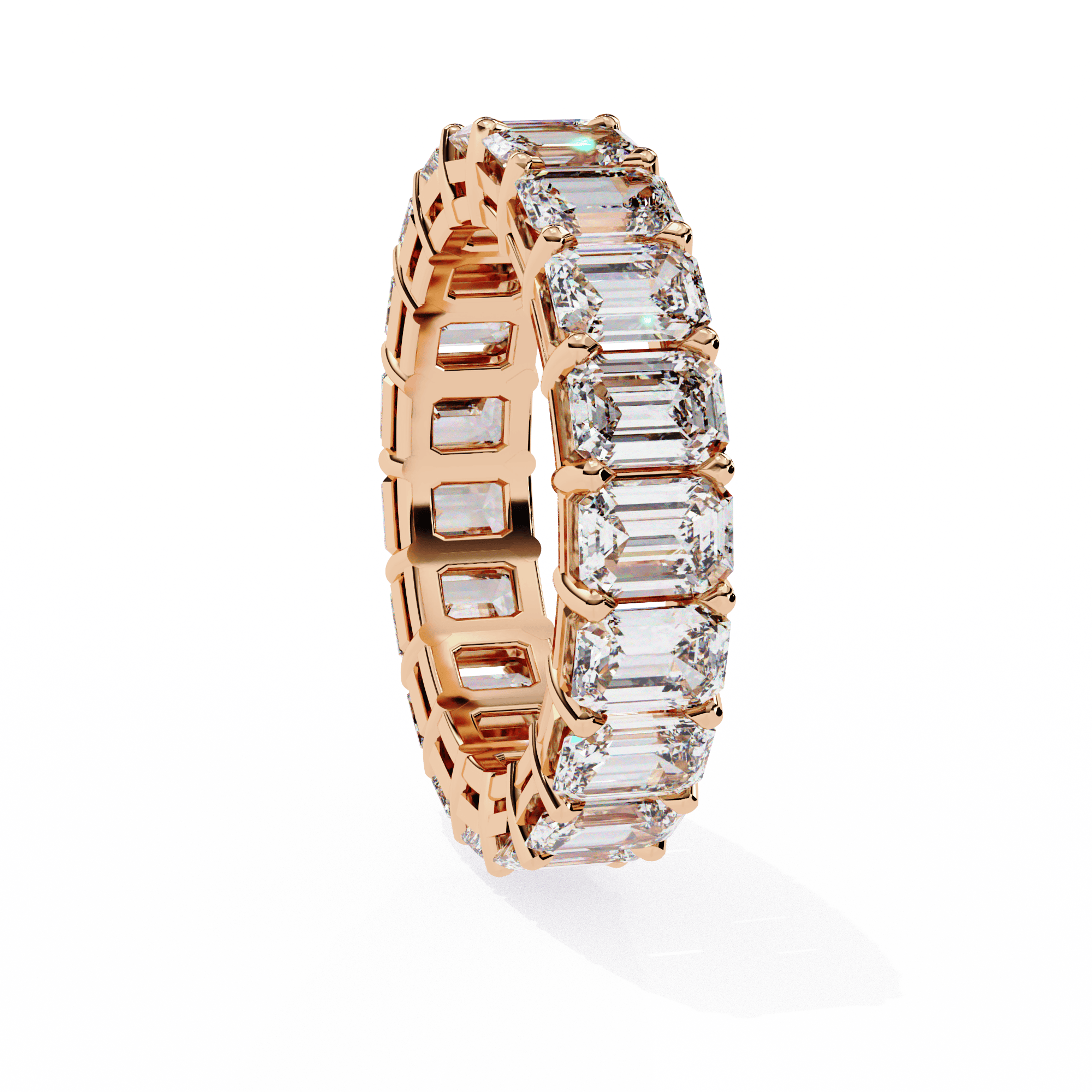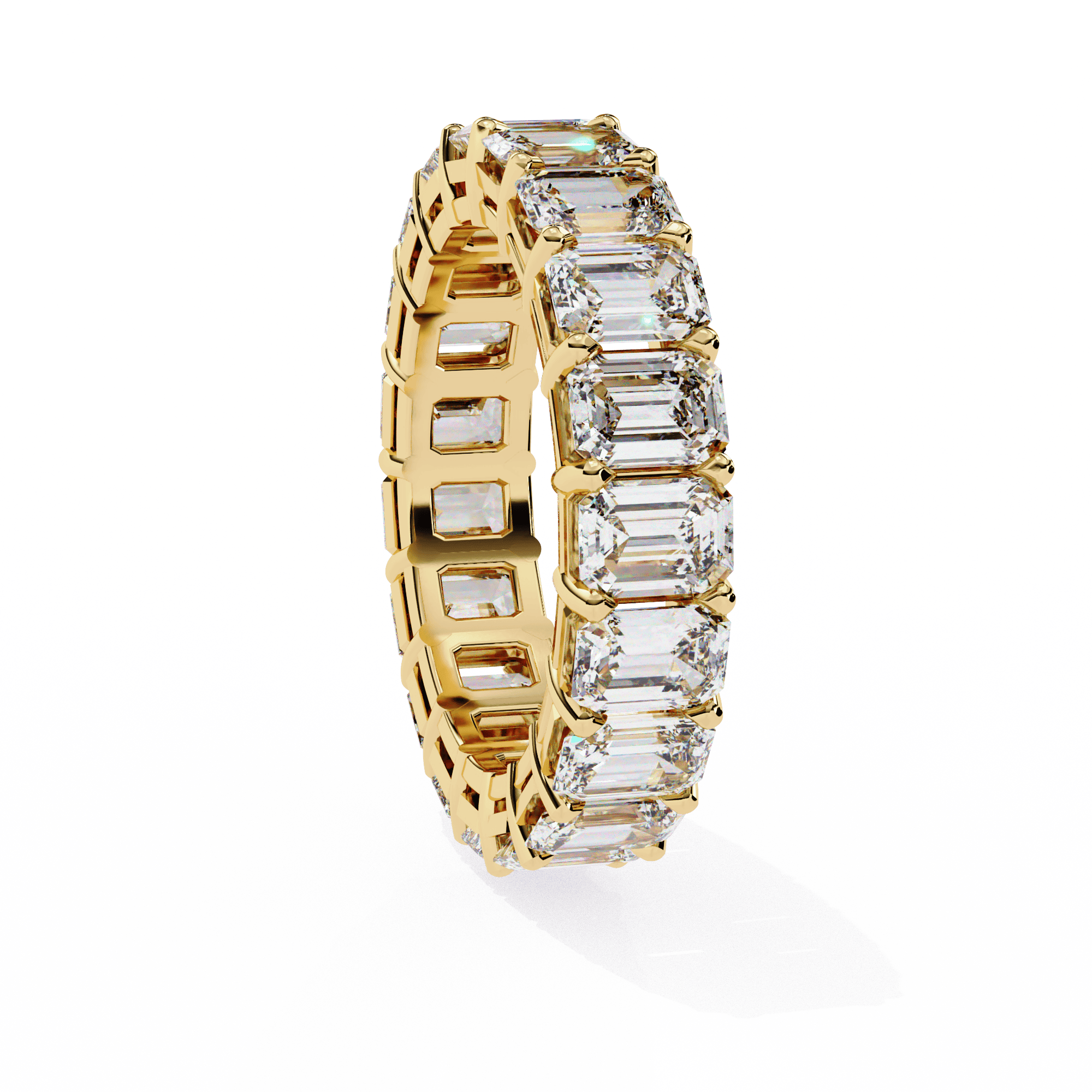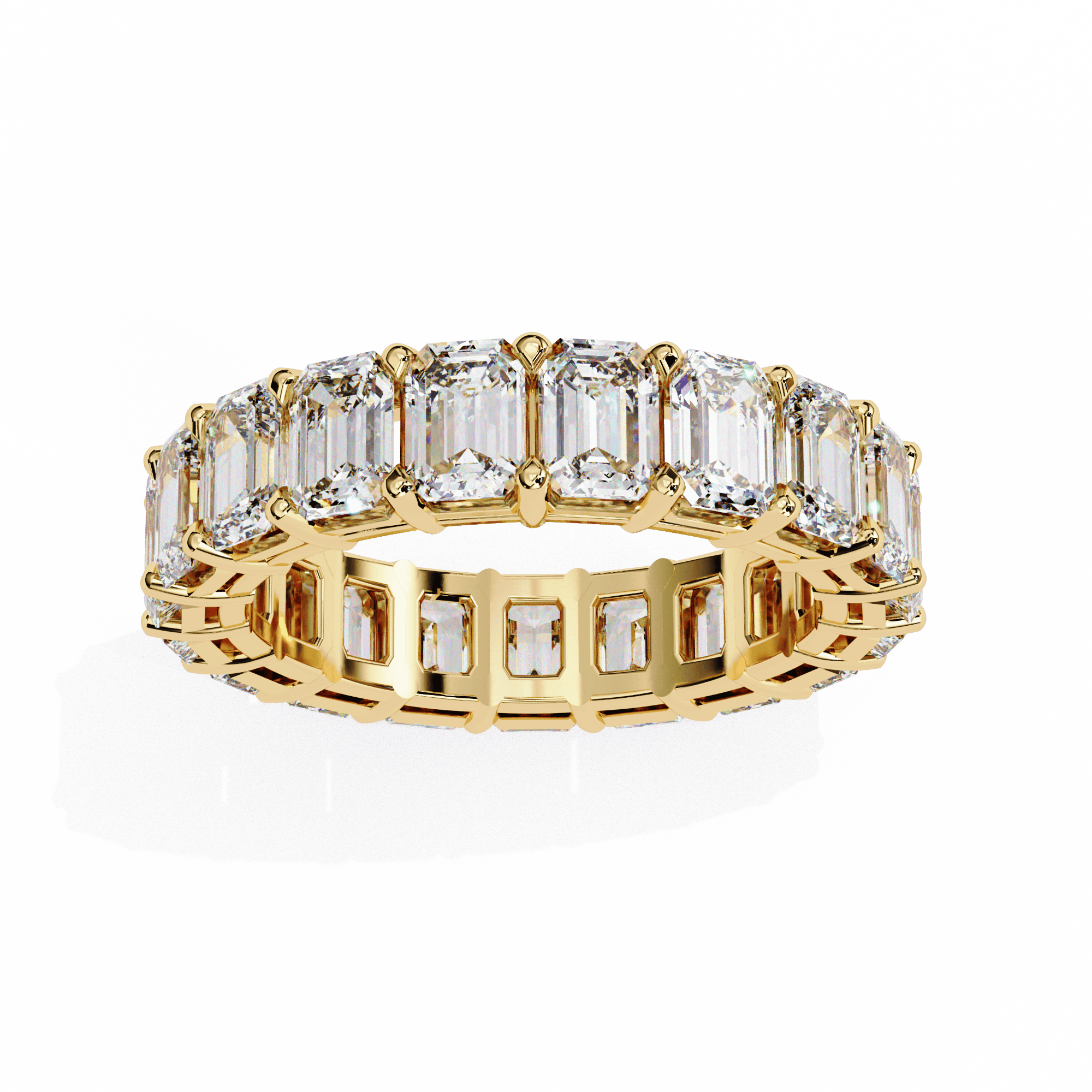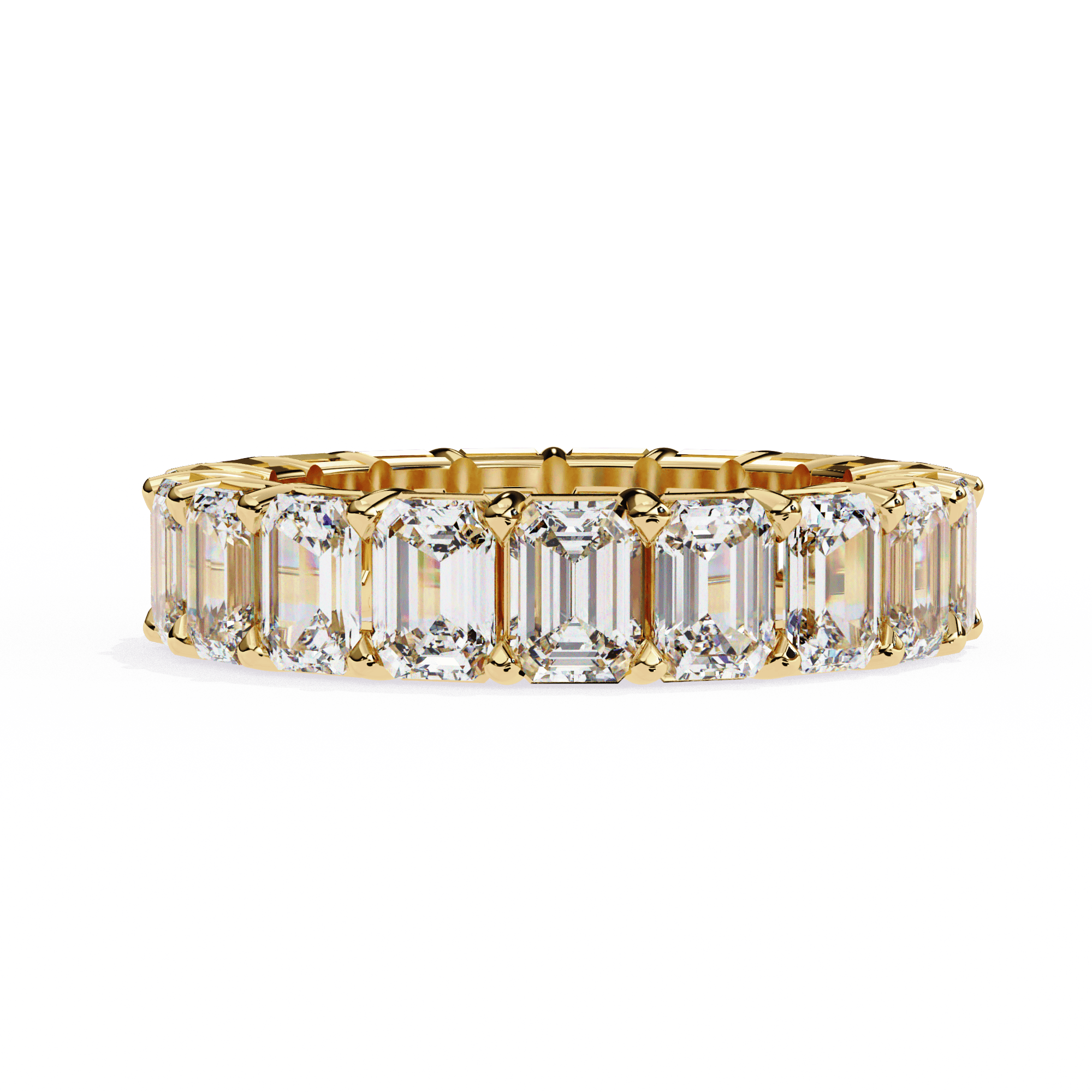 The VIMAYA Eternelle Diamond Band is a statement of enduring elegance, crafted in 18K gold and set with a continuous row of meticulously aligned emerald-cut diamonds. Each stone is precision-set to create a seamless flow of brilliance, reflecting light with clean, mirror-like facets.